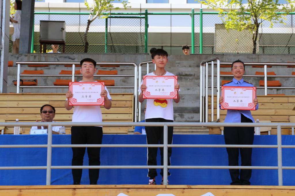 | 第七届田径运动会学生二年级男子团体总分前三名领奖 |
