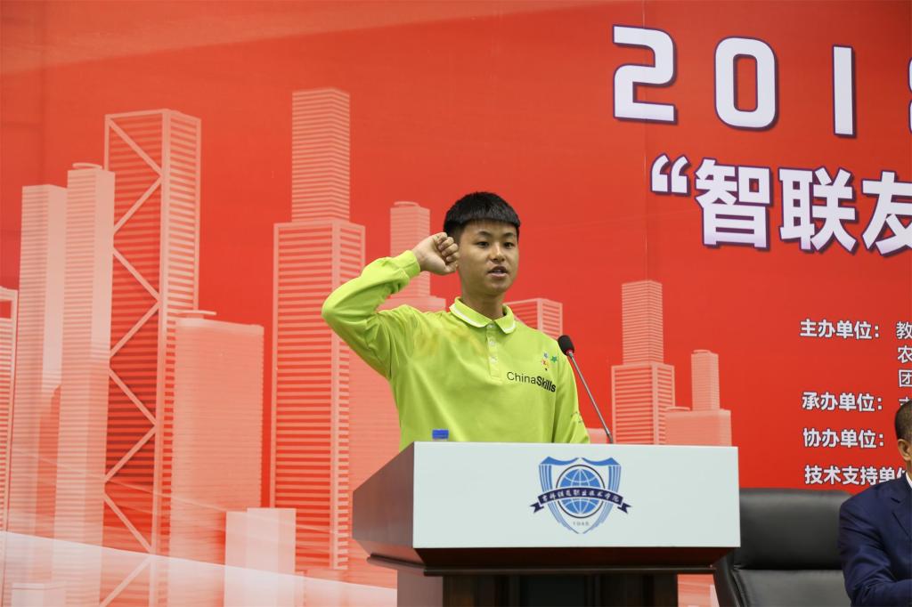 吉林铁道职业技术学院2016级王国栋同学代表全体参赛选手宣誓