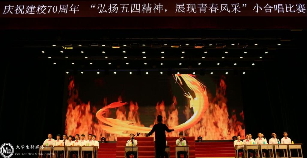为纪念五四运动99周年,弘扬爱国主义精神,唱响青春激情,庆祝学院建校70周年,5月9日,由学院团委主办,大学生合唱团承办的庆祝校庆70周年系列活动——“弘扬五四精神,展现青春风采”小合唱比赛在大学生活动中心顺利举行。学生处处长刘树全,学生处副处长、学院团委书记于威,学生处副处长刘佳佳,各分院党总支书记、学办主任、团委书记以及学院团委全体教师参加了本次活动。