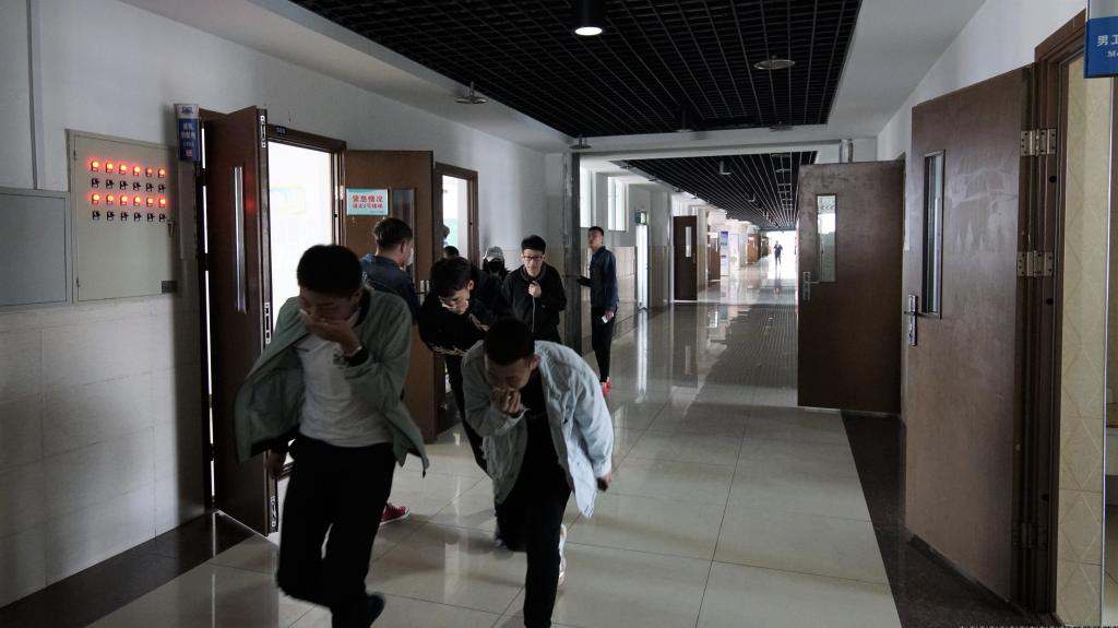 中午11:30分,火警信号响起,四个专业的11个班级开始有序进行模拟火灾逃生,按照指定的逃生通道,学生用湿面巾纸捂住口鼻,弯腰迅速撤离。分院学办主任、年级辅导员分别在走廊内东西两侧维持学生的疏散秩序,确保火灾逃生疏散演练正常进行。学生干部在1、2号安全疏散通道处,引导各专业学生安全疏散,维持走廊内的秩序,防止出现学生私自离开,偏离逃生队伍的现象。演练结束后,各班级班长整队、清点人数。最后,分院学办主任宋洋老师对本次逃生演练作出点评,对本次逃生演练中出现的问题提出了改进意见。