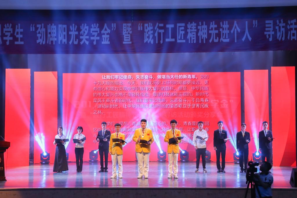 “劲牌阳光奖学金”特别奖获奖学生宣读了《争做大国工匠,勇当时代大任》倡议书