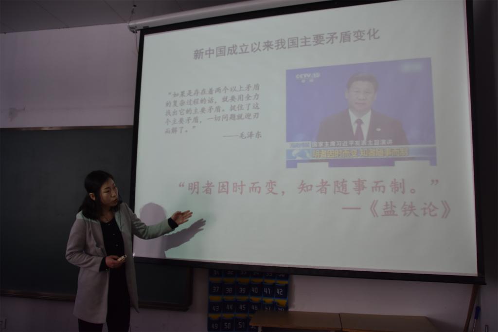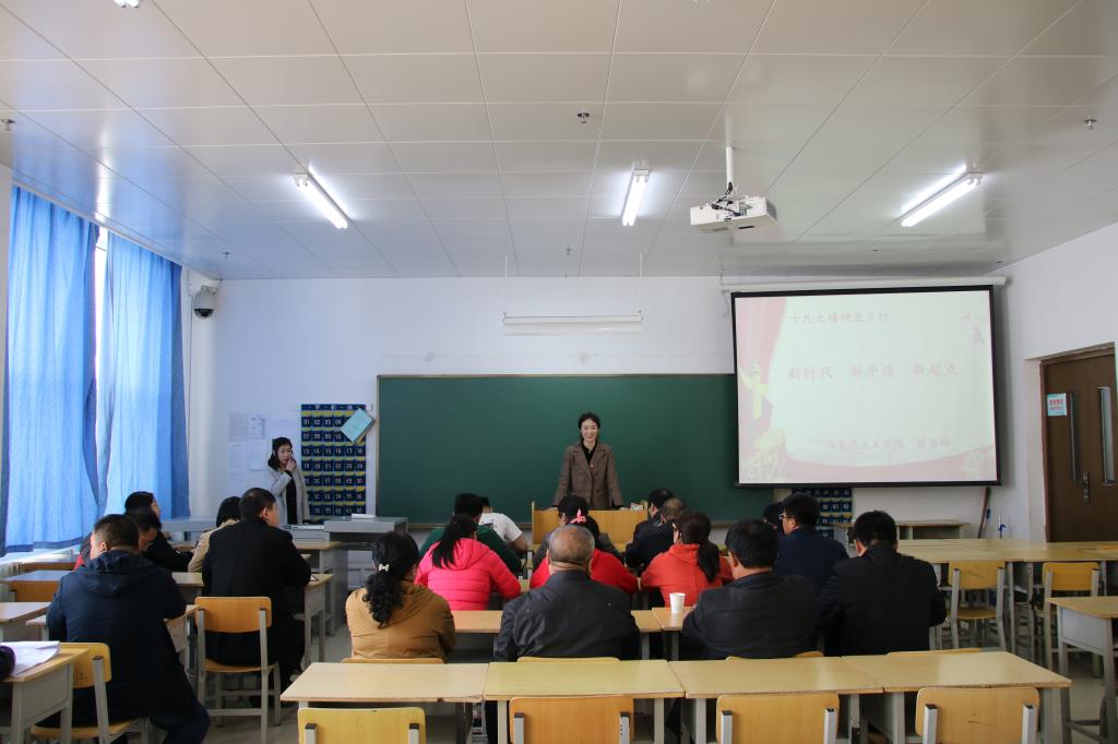 按照学院党委关于认真学习党的十九大精神的要求,4月18日下午在教学楼209教室,铁道工程分院党总支邀请了马克思主义学院蔡丽梅老师为分院全体党员师生做题为“新时代 新矛盾 新起点”的主题党课。参加本次党课学习的还有与我分院党团共建基地洋草沟村党支部全体党员干部。