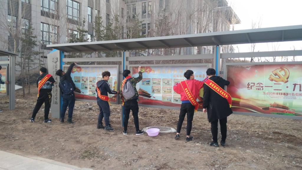 30多名铁道车辆分院的志愿者们带着清洁工具,认真做好清洁宣传栏工作。天气虽冷,水虽凉,但志愿者们劳动的热情依然不减,此次清洁共擦拭宣传栏24块。洁净透亮的宣传栏,使学生们体会到劳动成果带来的满足感和成就感。
