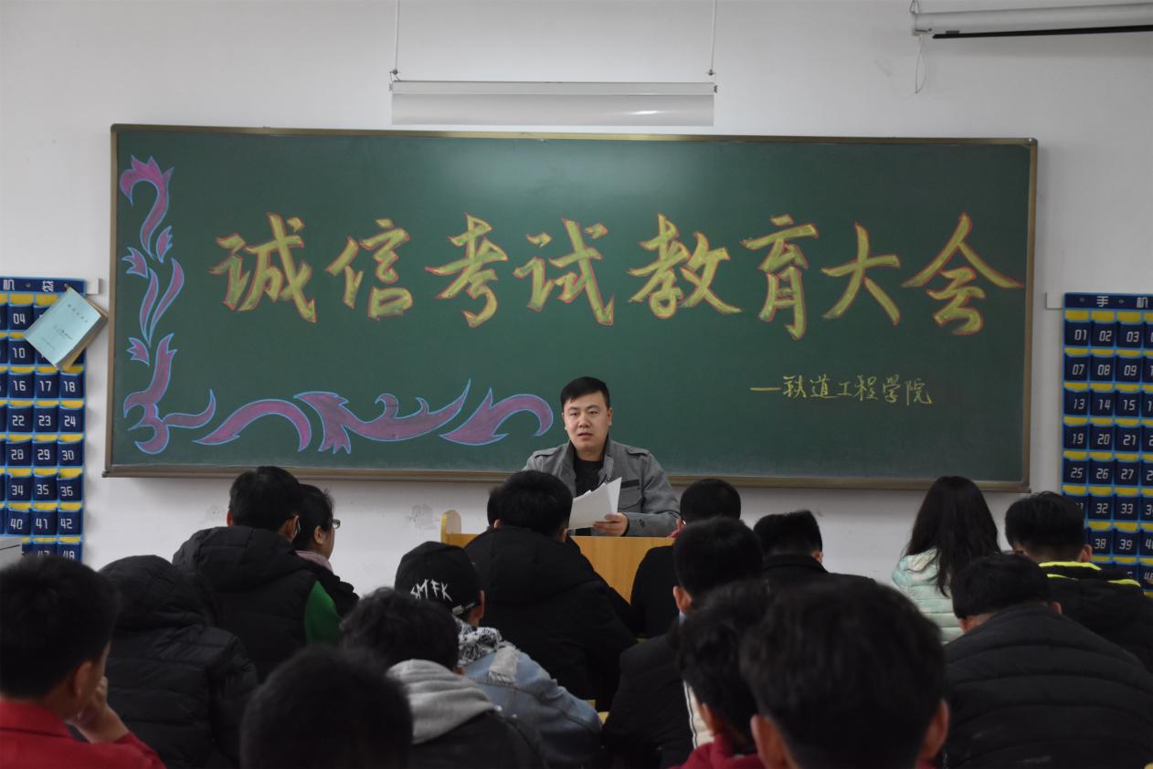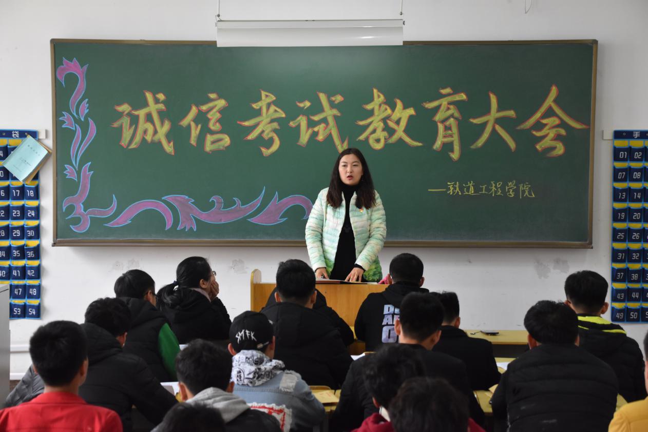 为贯彻落实学院诚信自学考试会议精神,严肃考风考纪,营造诚信和谐的考试环境,保证考试公正公平,4月12日,铁道工程分院在教学楼209教室开展了以“诚信考试光荣 作假舞弊可耻”为主题的自学考试考风考纪教育会议。会议由分院学办主任于鹏主持,团委书记张慧茹、辅导员国实、大一大二各班班委参加了本次会议。