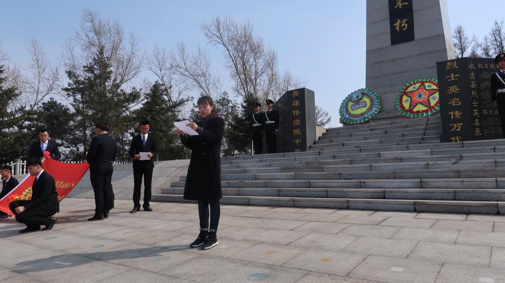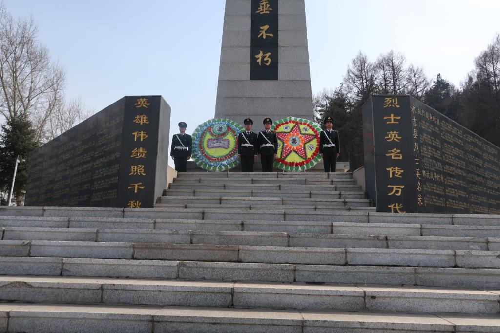 活动中,师生们怀着崇敬的心情,来到口前镇英雄纪念碑前,祭奠烈士英灵。首先,分院4名退伍学生为烈士献上花圈和鲜花,参加活动的全体人员在庄严肃穆的纪念碑前集体默哀,在寂静中表达了对烈士沉痛的哀悼和深切的思念。随后,分团委书记孙旭、学生党员王阁君分别向烈士献词,勉励大家继承革命传统,发扬爱国精神,用丰富的知识武装自己。全体师生以呼号的形式,表达出对先烈们强烈的敬佩之情。最后,师生们共同对烈士陵园进行了清扫。