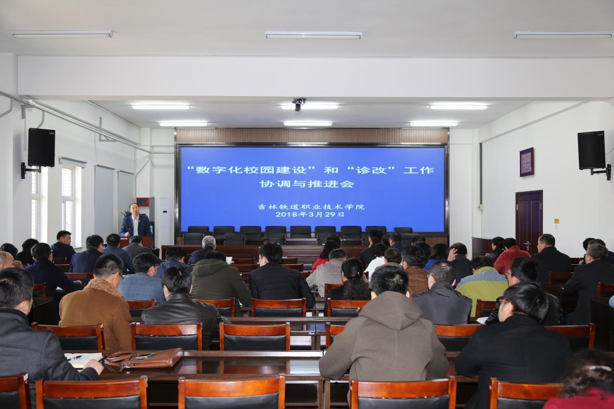 2018年3月29日,学院在办公楼五楼会议室召开“数字化校园建设”和“诊改”工作协调与推进会。学院党委书记王喜库、院长曹炳志、党委副书记徐彤宝、副院长田雷、纪委书记苏春年、副院长李欣和全院中层干部、各诊改工作组成员及各职能部门诊改工作联络员参加了会议。会议由学院院长曹炳志主持。