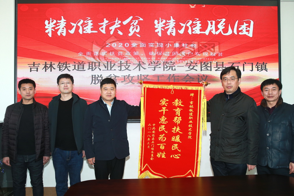 最后,金日书记代表安图县石门镇党委向学院赠送了“教育扶贫暖民心,实干惠民为百姓”的锦旗。