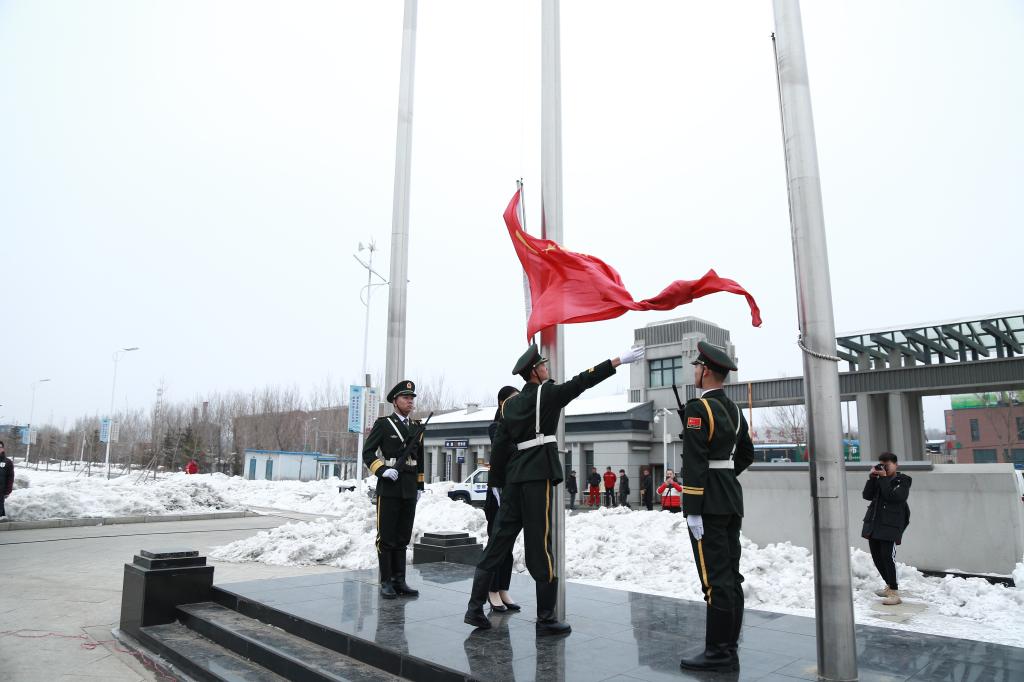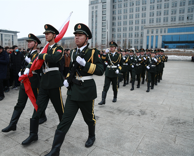 7时20分,学院国旗护卫队迈着铿锵的步伐护送国旗入场。伴随着庄严雄壮的国歌声,鲜艳的五星红旗冉冉升起,在蓝天的辉映下随风飘扬,全体师生庄严肃立,面向国旗行注目礼。