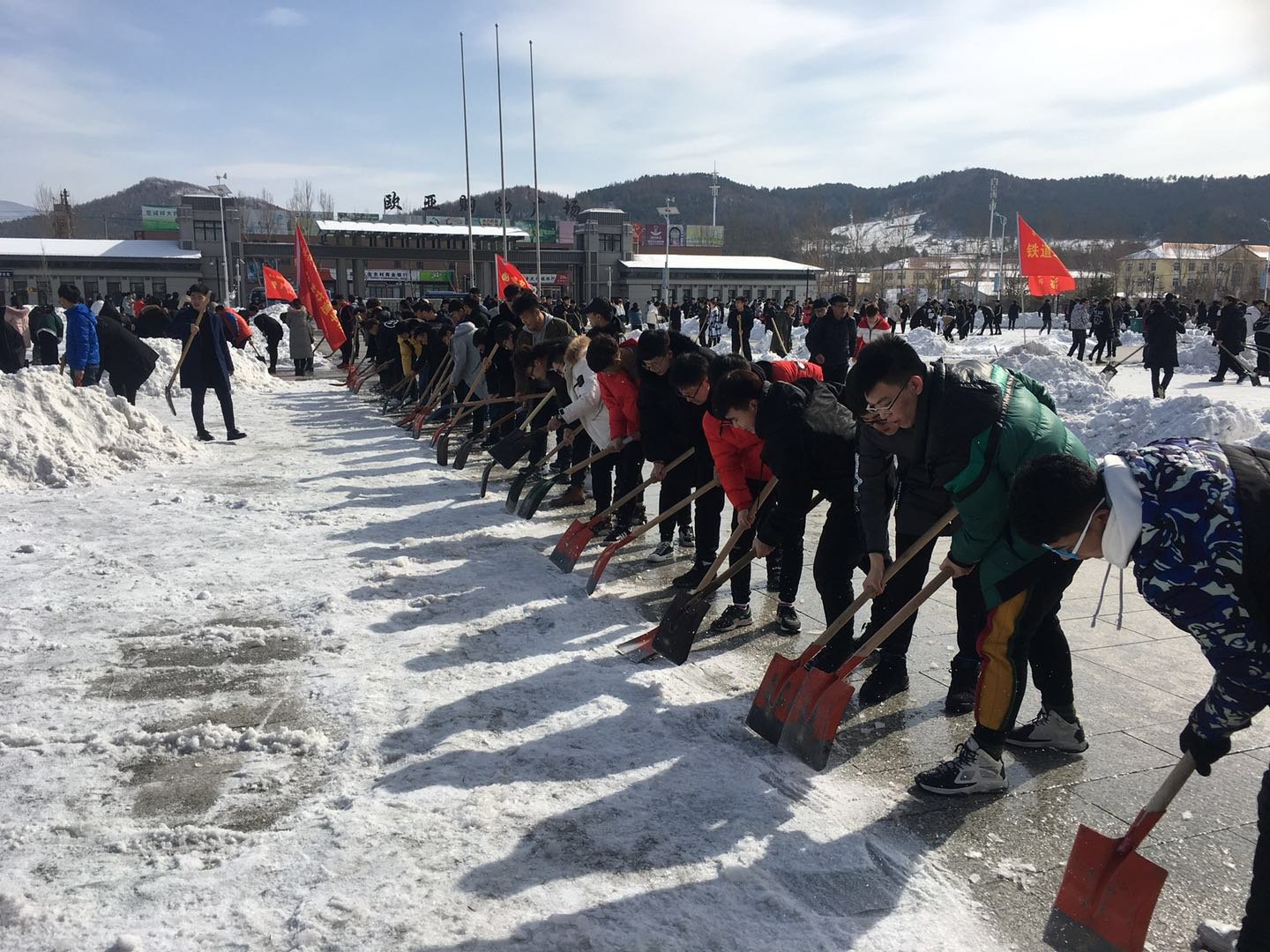 寒冷的天气阻挡不了志愿者们的服务热情,他们干劲十足,全心投入在志愿服务中,在大家齐心协力的配合下,完成了清雪、清冰任务。铁道车辆分院不仅做好自己的志愿服务活动,更发扬了雷锋精神,协助管理分院进行清雪。
