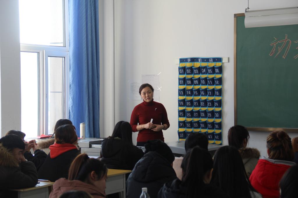2017年12月27日下午,铁道运输分院邀请吉林客运段动车队副队长吕秀慧,在教学楼西302和913教室进行动乘专题讲座与实训指导。专题讲座由分院长白山技能名师范先云主持,高铁乘务教研室主任魏鸿儒、教师宋玥及高铁乘务2016级、2017级的全体学生参与了本次活动。