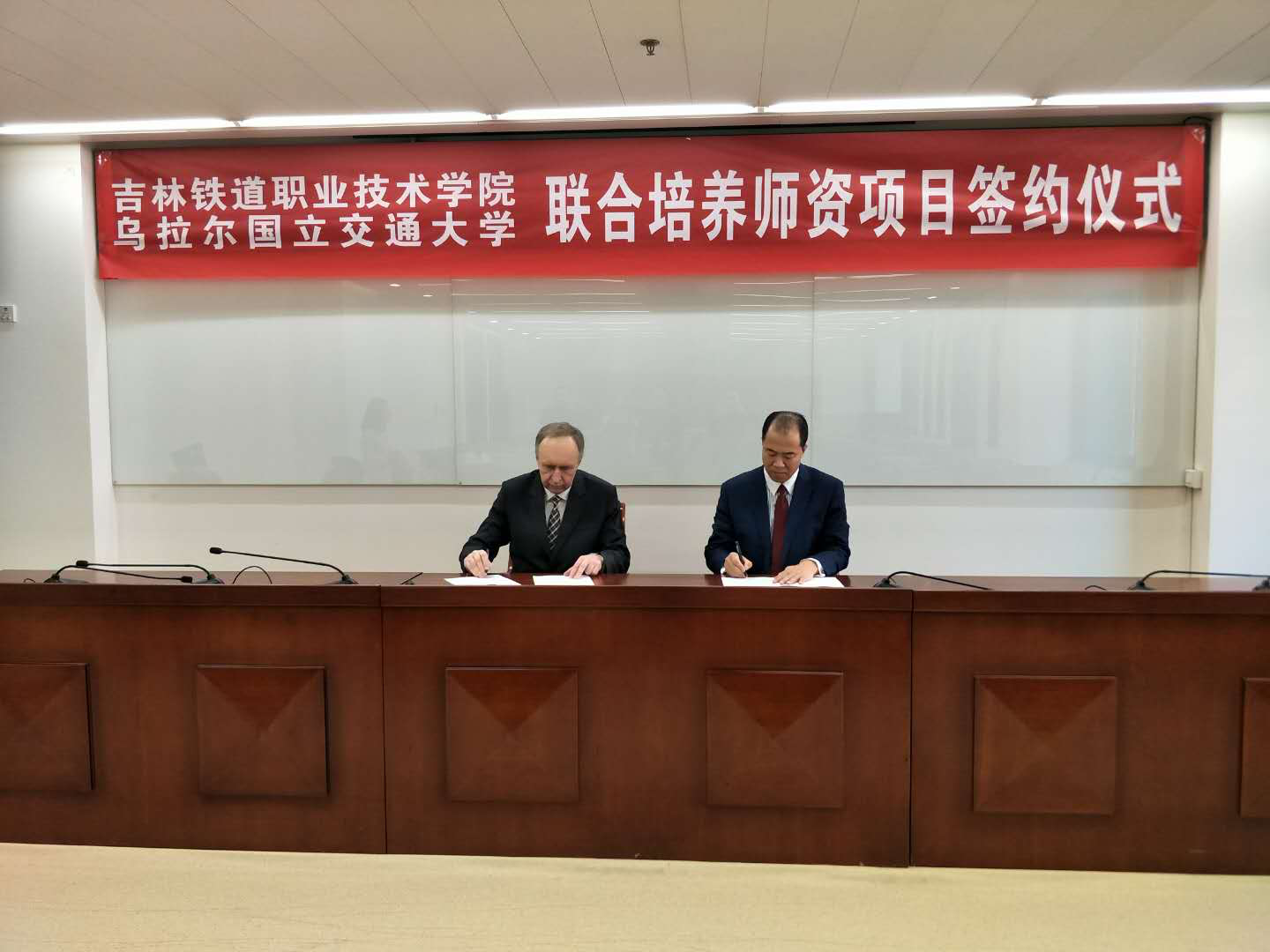 | 与乌拉尔国立交通大学校长亚历山大•加尔金进行签约 |