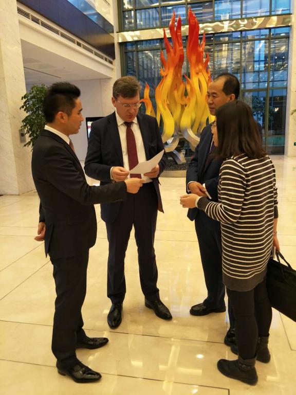 | 与圣彼得堡国立交通大学校长亚历山大•帕尼切夫,欧亚协会会长冯耀武进行交谈 |