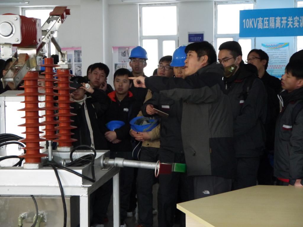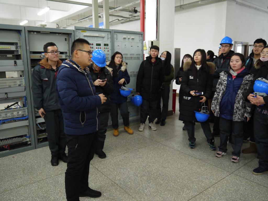 | 电气工程分院办公室主任张心刚介绍实训基地的设备设施 |