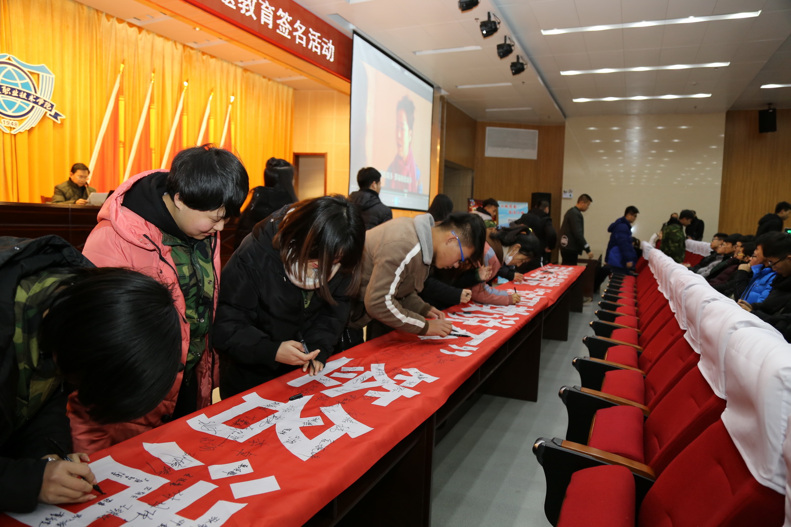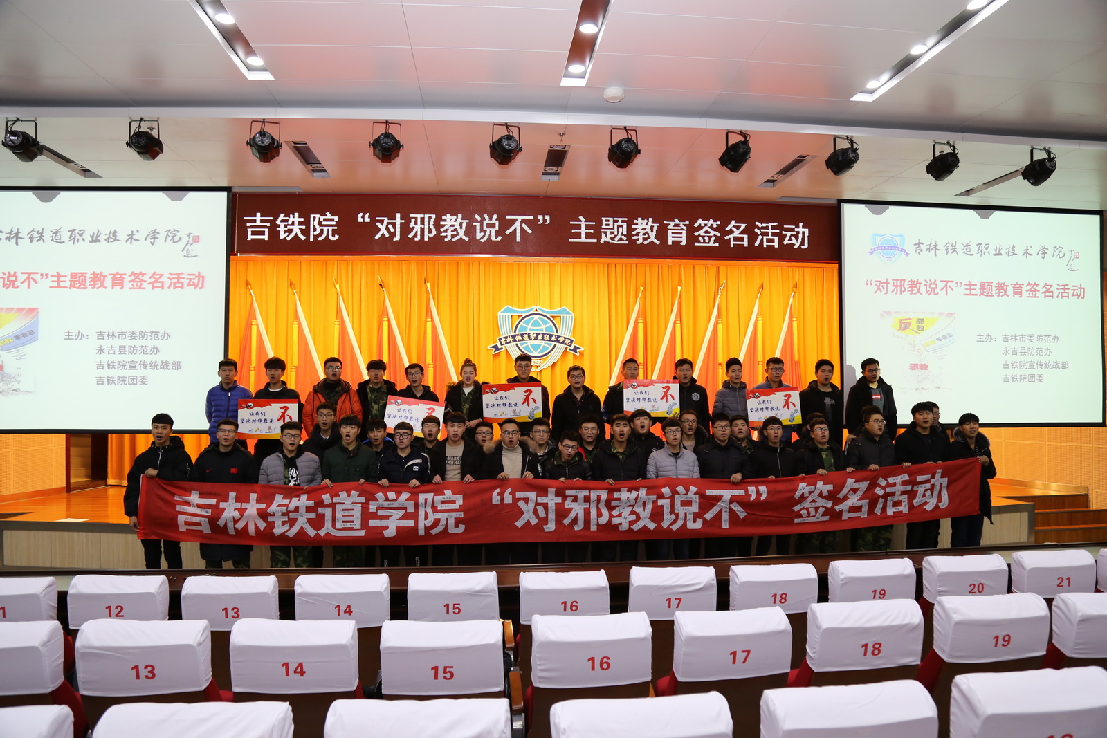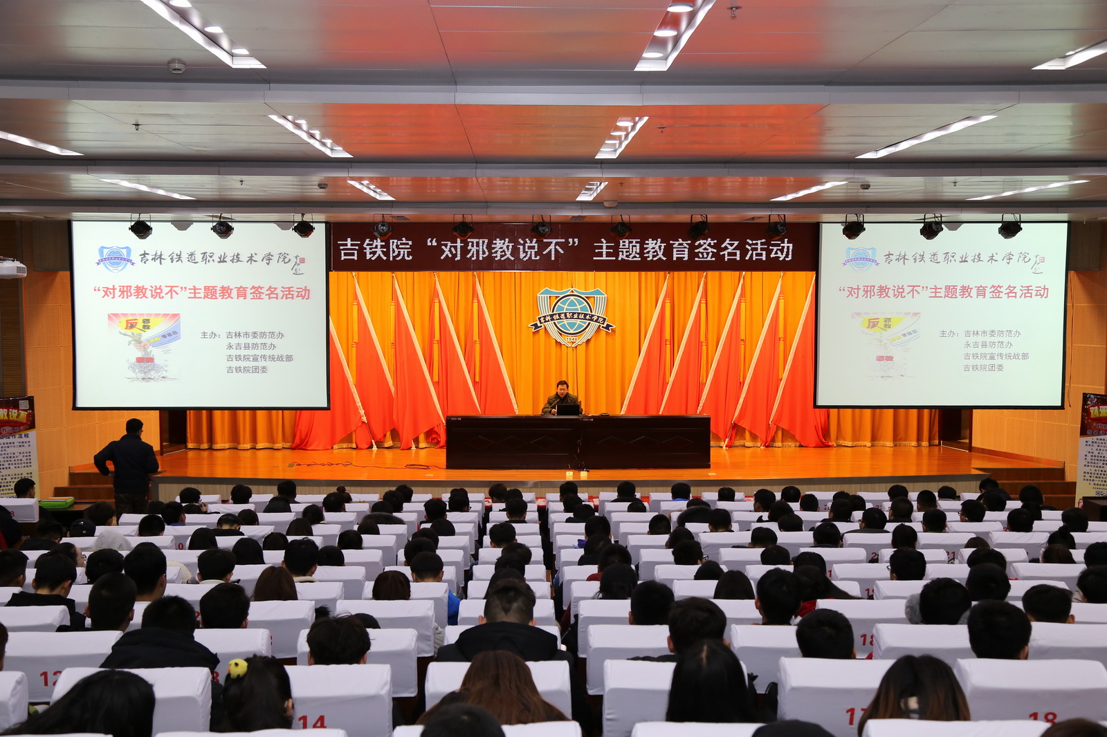 学院于12月13日13:20在图书馆报告厅举行“对邪教说不”主题教育签名活动,吉林市、永吉县防范办的领导和工作人员以及来自各分院的260名师生参加了本次活动。本次活动由学院党委宣传统战部部长周环宇主持。吉林市松花江网、永吉电视台等媒体进行了现场采访报道。