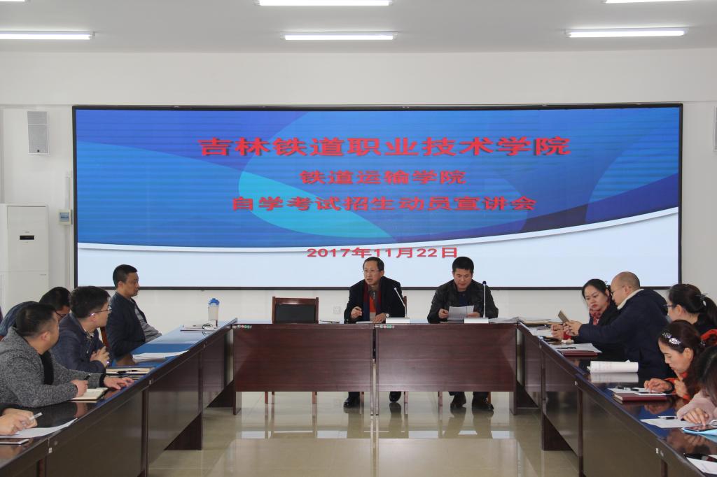 为贯彻落实11月17日学院继续教育工作会议和曹炳志院长的讲话精神,11月22日铁道运输分院在办公楼第二会议室召开了继续教育招生宣传动员会议,分院全体学工干部、班主任和学生干部代表参加会议。