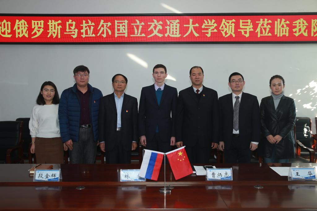 11月16日上午,俄罗斯乌拉尔国立交通大学科研处舒马科夫·康斯坦丁·根纳季耶维奇处长、中俄国际学院乔聪院长来到我院进行友好访问。我院院长曹炳志、副院长王华、国际交流中心主任盛莉、铁道车辆分院院长段金辉等在行政办公楼第一会议室会见了来访客人。
