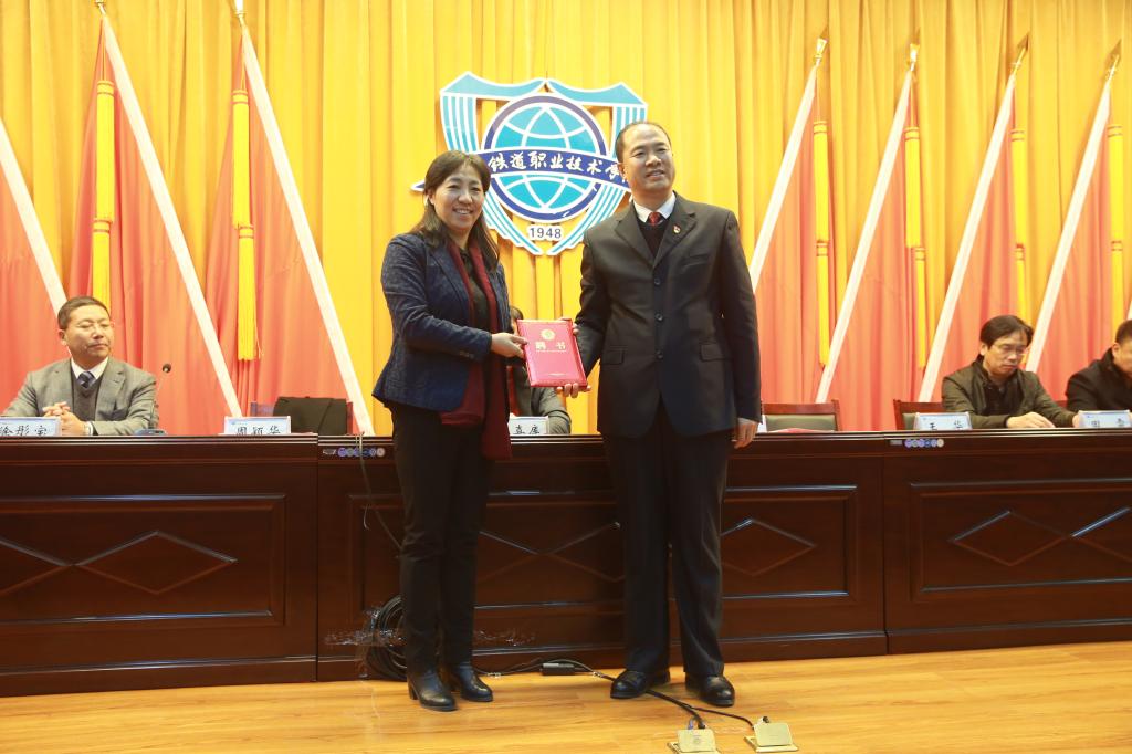 曹炳志院长为周颖华研究员颁发吉林省铁道高职教育研究基地特聘研究员聘书