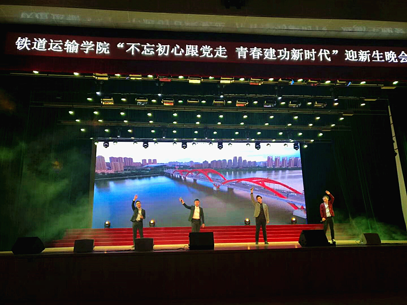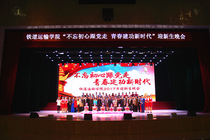 为弘扬十九大精神,高效普及不忘初心、牢记使命的政治宣言,展现当代大学生对党的热爱与支持,铁道运输学院于2017年11月14日17:00在大学生活动中心举办了“不忘初心跟党走,青春建功新时代”主题迎新生晚会。学校党委副书记徐彤宝、团委书记于威、学生处副处长刘佳佳,学生处管理科科长李爽、团委曲担娃老师及各分院的学办主任、团委书记和铁道运输学院全体师生一同观看了本次迎新晚会的演出。