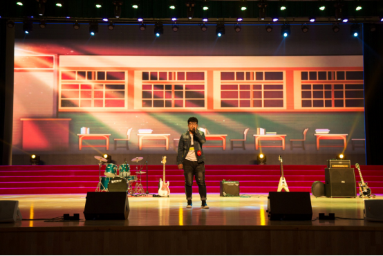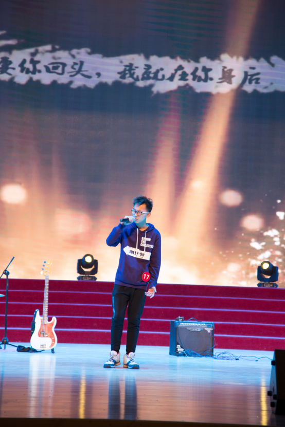 比赛前夕,音乐协会带来的暖场歌曲《蓝莲花》拉开了比赛序幕,吉他、贝斯、架子鼓,热情的音乐带来了热烈的气氛,即是欢迎全场观众,又在为选手加油助威。