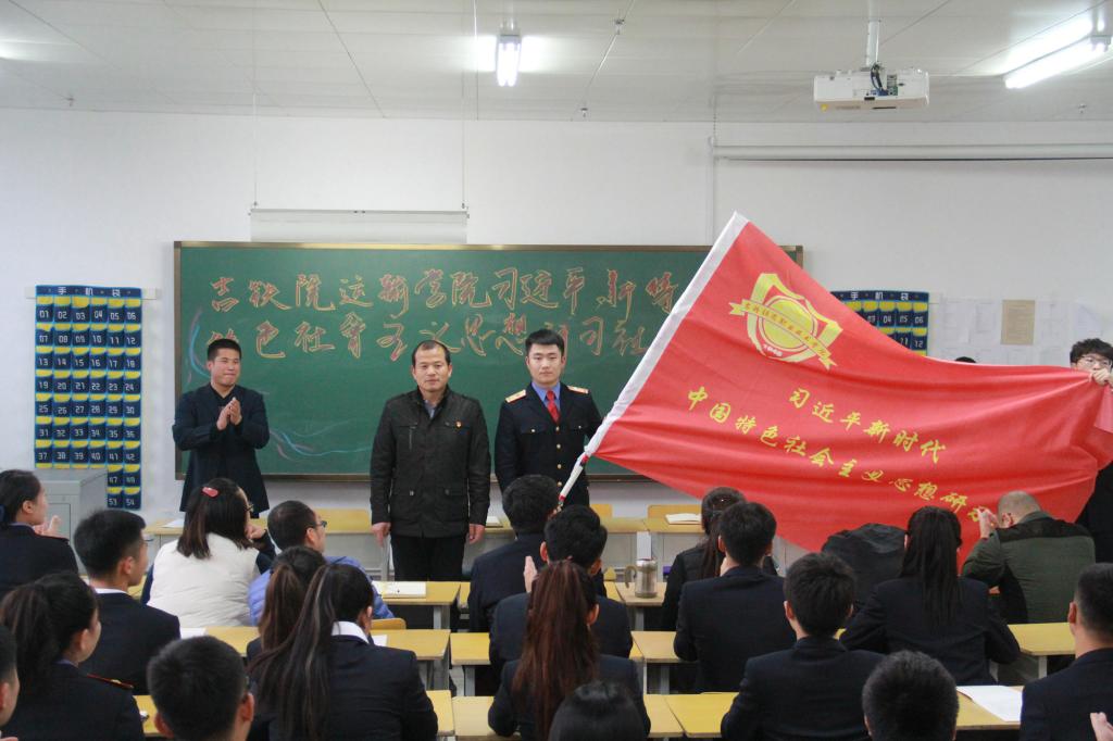 | 刘本基部长为“铁道运输学院习近平新时代中国特色社会主义研习社”授旗 |