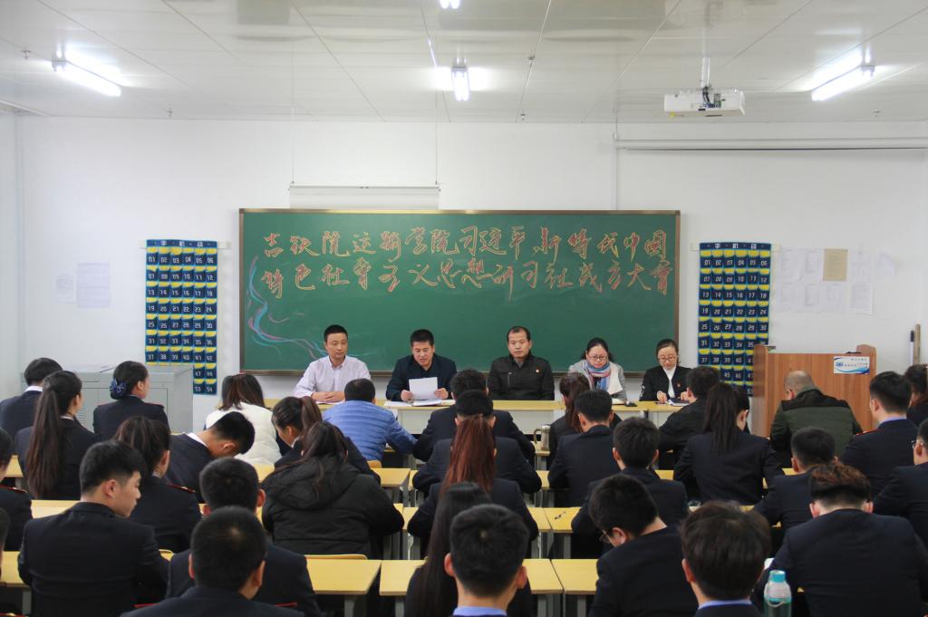 会上,学校党委组织部刘本基同志为“铁道运输学院习近平新时代中国特色社会主义研习社”授牌、授旗;铁道运输学院各位与会师生代表结合自身工作、学习畅谈了对党的十九大报告的学习体会,大家纷纷表示一定会认真学习、努力工作,坚定理想信念,志存高远,脚踏实地,勇做时代的弄潮儿,在实现中国梦的生动实践中放飞青春梦想,在为人民利益的不懈奋斗中书写人生华章!