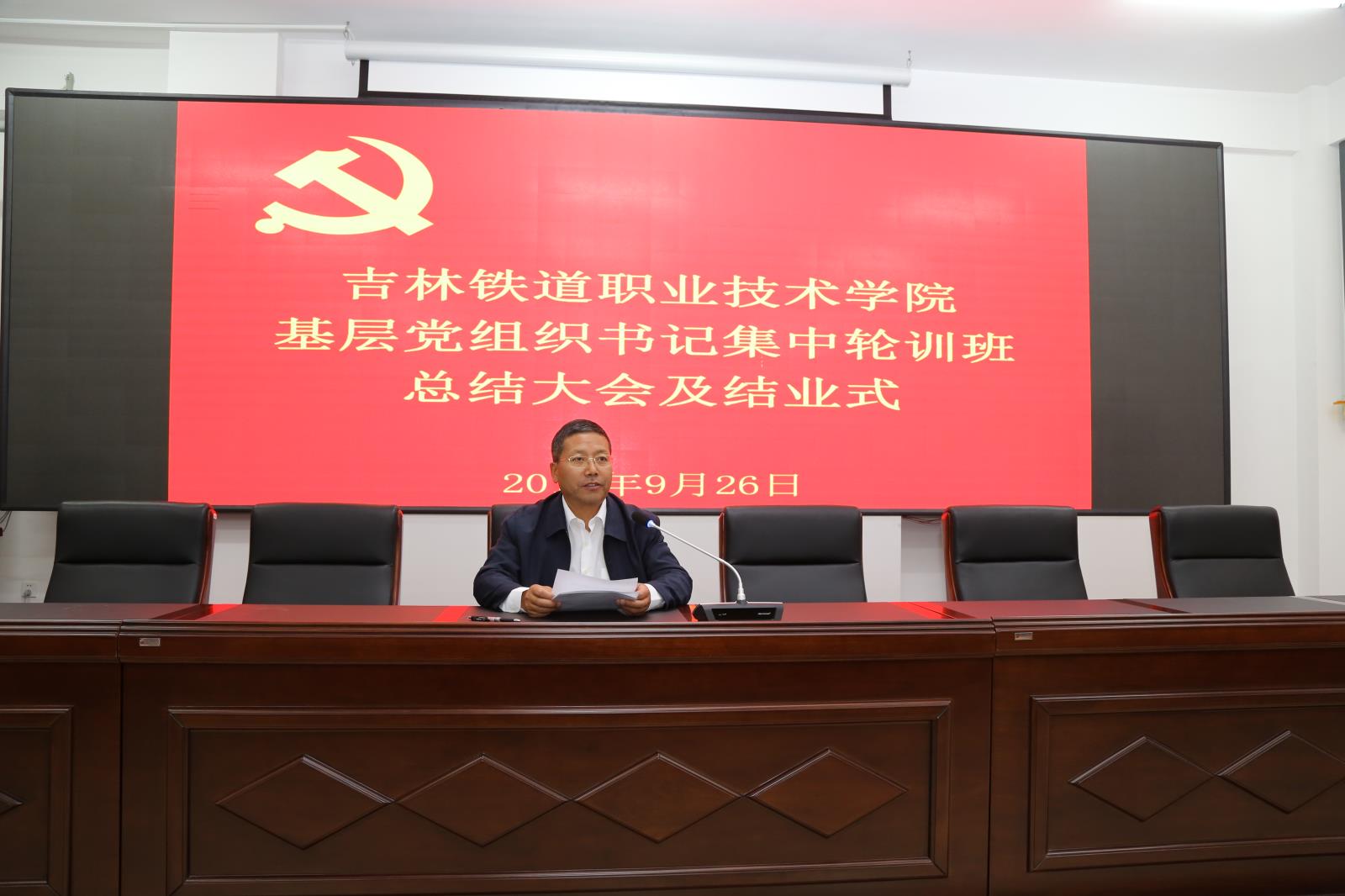 根据学院党委《关于吉林铁道职业技术学院基层党组织书记集中轮训计划安排》要求,2017年9月26日15:00,学院基层党组织书记集中轮训班结业式在办公楼五楼会议室举行。学院党委副书记徐彤宝以及参加轮训的全体基层党组织书记出席大会。