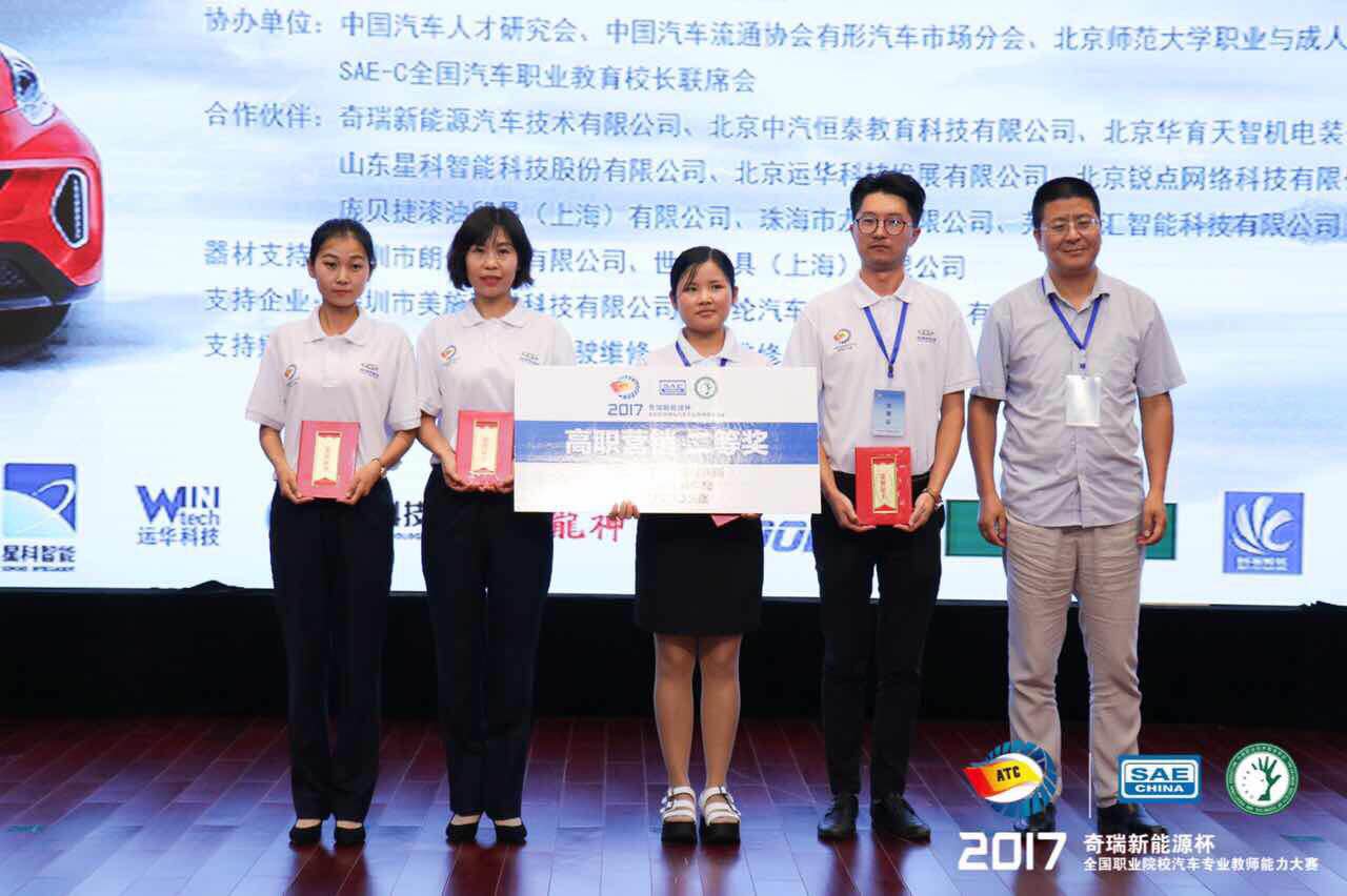 9月18日至21日,由中国汽车工程学会和中国职业技术教育学会联合主办的“2017全国职业院校汽车专业教师能力大赛”在重庆市立信职业教育中心举行。我院由机械工程分院教师赵艳、邹慧组成的代表队以第五名的成绩荣获高职汽车营销赛项二等奖及新车销售综合能力考核项目单项奖。