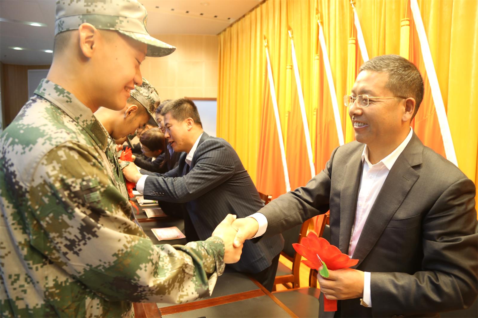 | 与会领导与入伍学生合影 |