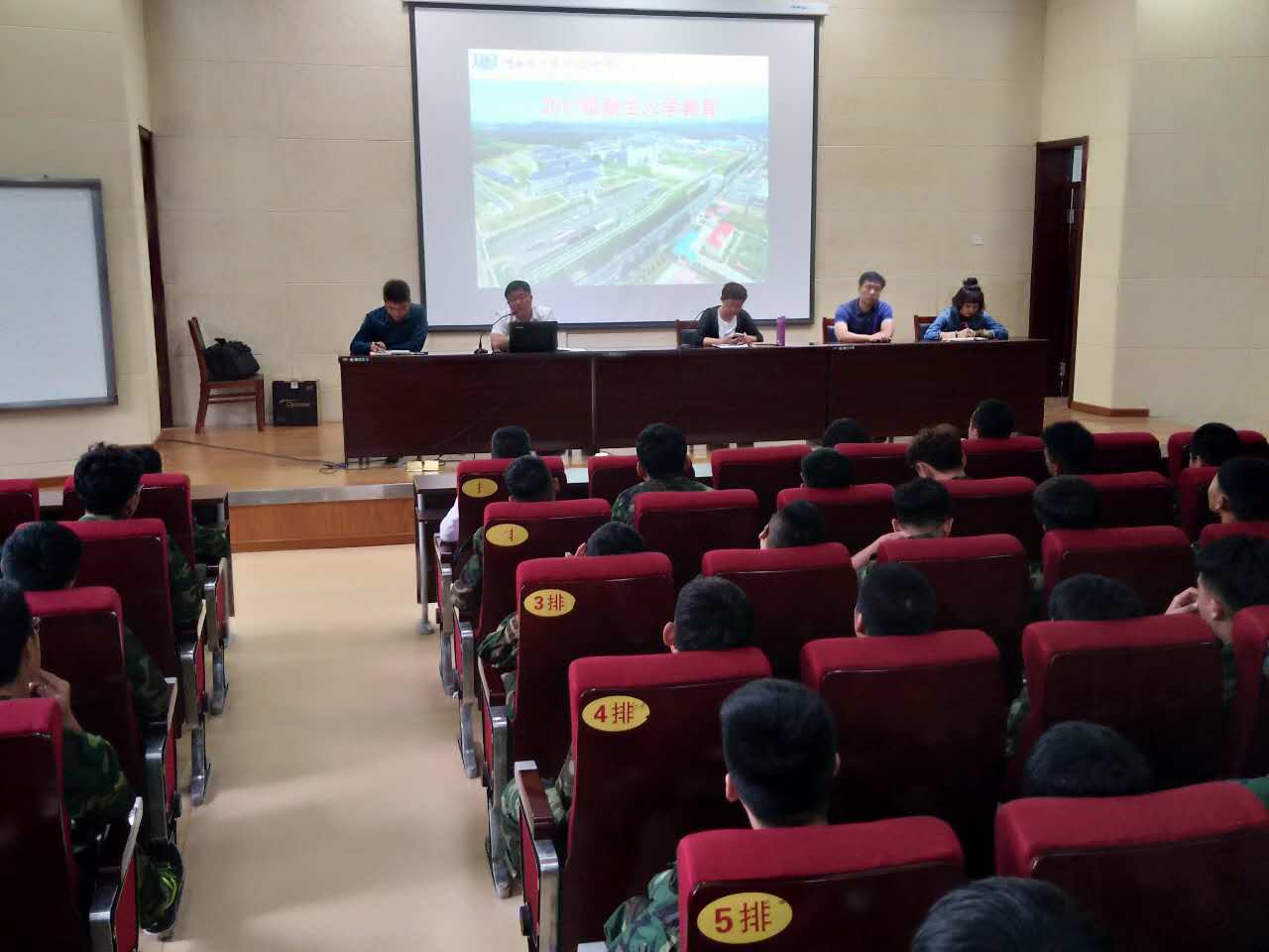 分院长段金辉首先对新生报考铁道车辆分院的信任表示感谢,对学院悠久办学历史和优越办学条件、办学理念和思路以及学院在招生就业、国际合作等方面取得的丰硕成果进行了介绍。同时还详细介绍铁道车辆学院的实训条件和教学成果,展示各位名师风采及所获荣誉。向新生们介绍动车组检修技术、铁道车辆、铁道运输类(铁道车辆)的专业培养目标、职业面向、学业收获及专业近三年就业情况。对学院在2017级新生中选拔优秀学员出国留学,本硕连读,毕业回校任教的政策进行了介绍。