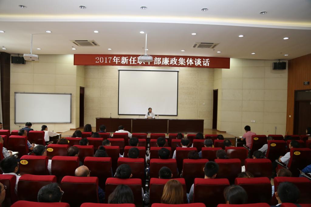 为提高新任职干部对党风廉政建设重要性的认识,增强廉洁勤政意识,根据领导干部廉洁从政有关规定,学院纪委于2017年9月4日在培训中心报告厅召开2017年新任职干部廉政集体谈话会议。出席此次会议的有学院纪委书记苏春年,纪委副书记、纪检监察审计处处长侯占峰,组织部部长刘本基以及全体新任职干部。会议由侯占峰同志主持。