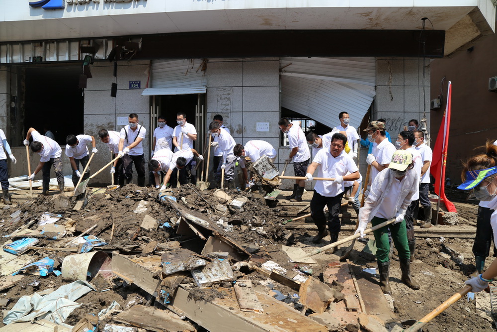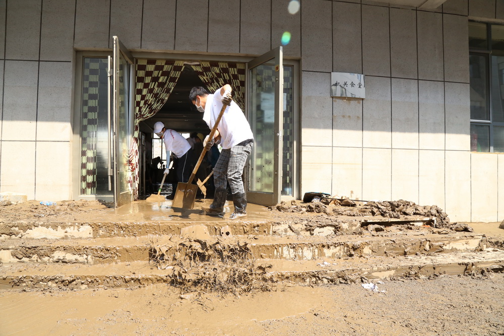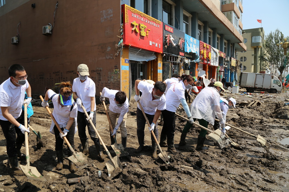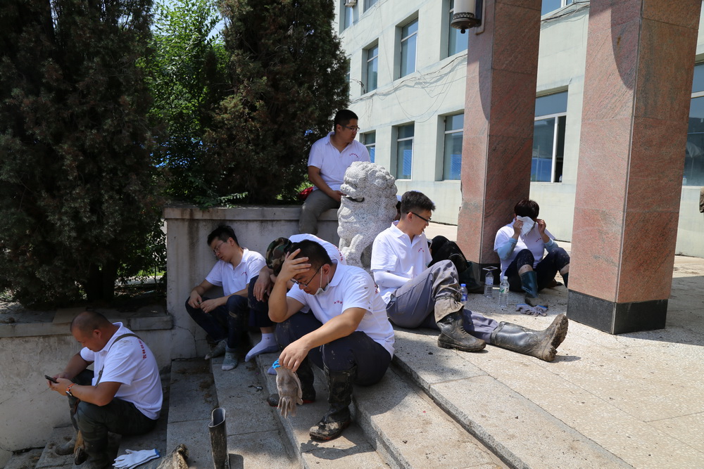 7月18日一早,50名抢险队员被分配到永吉县灾情最严重的老街地区和县政府机关大楼机关食堂,与部队官兵一同开展清理淤泥和垃圾工作。天气炎热,阻挡不了他们抢险的脚步;身体疲惫,消减不了他们救灾的激情。抢险队员们眼里有活、脚下不停、手上不歇,发扬了团队作战,一不怕累、二不怕脏、三不怕晒的精神,认真完成每一项工作。