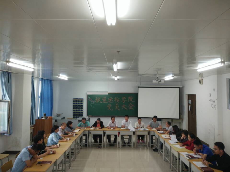 铁道运输分院于6月21日在教学楼915召开全体党员大会。分院党总支书记盛继前、院长于伯良,办公室主任吴荣波、学办主任孟家辉及分院全体党员参加本次会议,会议由盛继前书记主持。