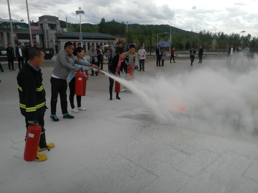 会后,在教学楼南侧广场组织各学院党总支书记、院长、学办主任、团委书记进行了灭火实操演练,由保卫处