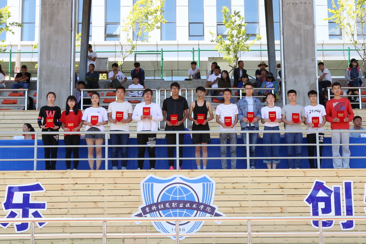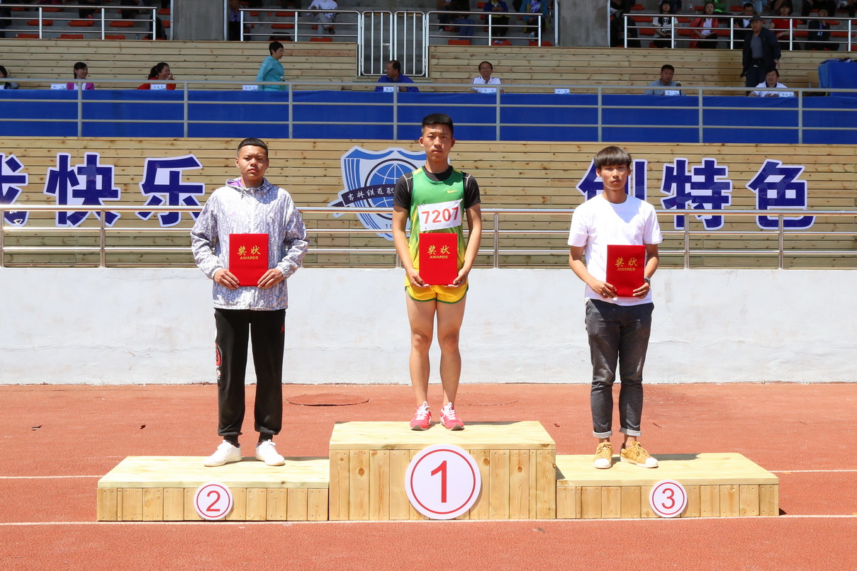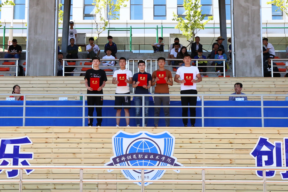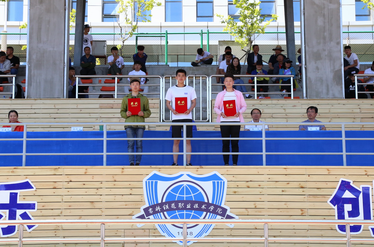 | 学生一年级男子团体总分前三名:铁道机车学院、电气工程学院、铁道车辆学院的学生代表领奖 |
