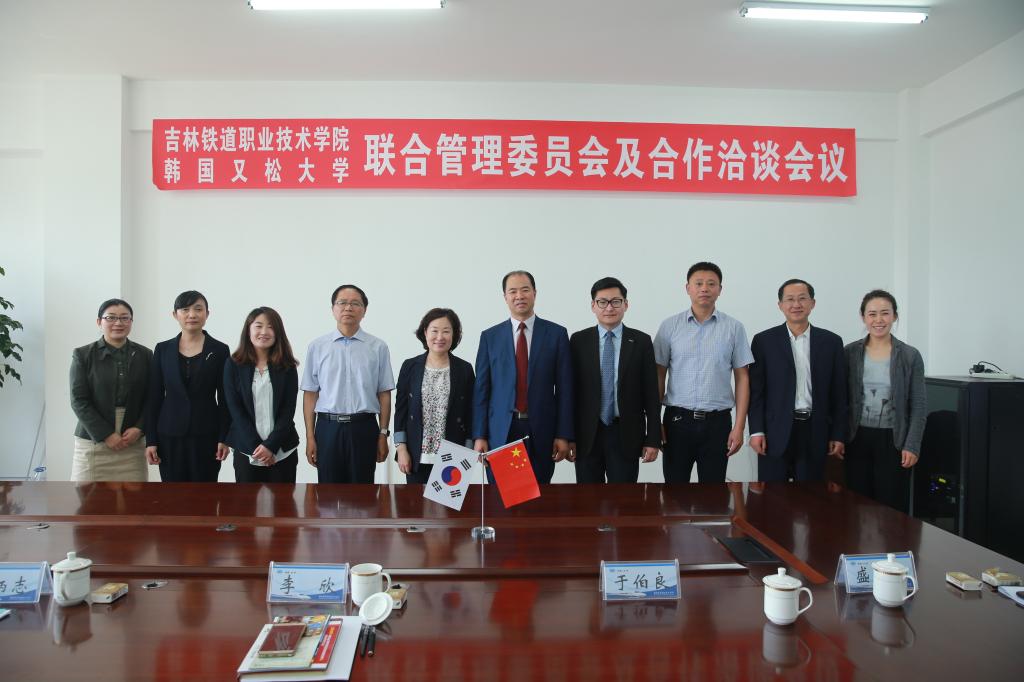 会上,曹炳志院长对又松大学领导的到来表示热烈欢迎,并回顾了两校合作交流情况。甘瑞瑗副校长在会谈中表示,希望在两校已取得的稳固合作基础上,进一步继续加深合作关系。会谈在轻松友好的气氛中进行,双方就合作办学相关条款进行协商,其中对韩方承担的四个三分之一做出了进一步明确,并商定每年选派优秀教师赴又松大学进行学术交流,每个合作办学专业选派两名优秀学生赴又松大学免费学习一学期或一年。甘瑞瑗副校长表示,每年选派四名韩国教授来吉铁院,到合作办学的两个专业进行授课,也希望能够组织韩国学生来吉铁院进行冬令营和夏令营。