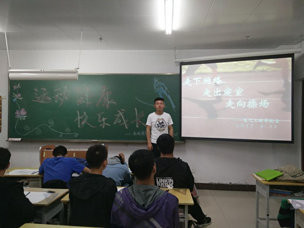 根据学院第二届“我运动,我健康,我快乐”阳光体育节的活动安排,电气工程分院于4月13日晚自习开展了“运动健康、快乐成长”主题团课活动。
