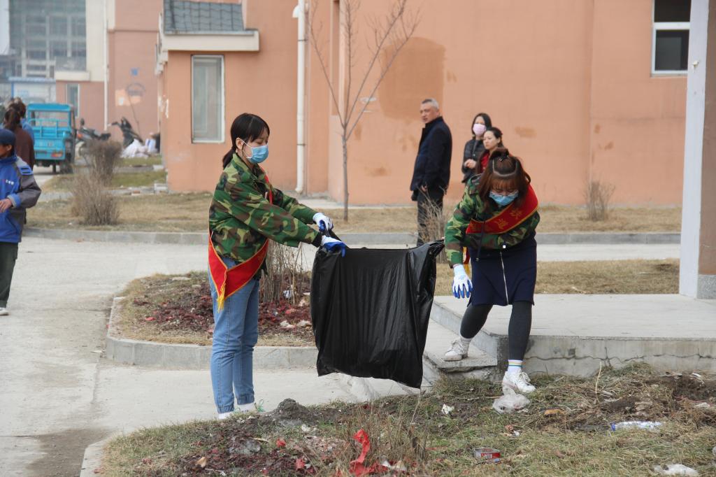 随后,志愿者在社区工作人员带队下进入滨河家园,同学们分组对滨河家园内的小广告和白色垃圾进行彻底的清理,清理过程中大家热情高涨,不怕脏、不怕累,无论是草坪还是墙角细微处都变得干干净净,花园变得整洁起来。社区居民对志愿者高度认可,并对“创卫”目标有了深刻的认识。志愿服务活动后,滨河社区工作人员和志愿者合影留念。