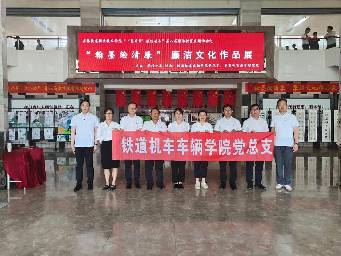 在全校上下深入开展党纪学习教育之际,7月1日,铁道机车车辆学院党总支组织党员教师参观的“‘复兴号’廉洁动车”第八届廉洁教育主题活动之--“翰墨绘清廉”廉洁文化作品展。