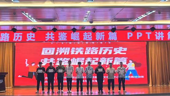 决赛现场,9名选手以铁路为主题精心制作了PPT,从铁路的发展历程、技术创新、文化传承等多个方面展开讲解,通过生动的图片、动画和案例,将铁路历史知识的丰富内涵展现得淋漓尽致,使观众能够轻松的理解和接受。