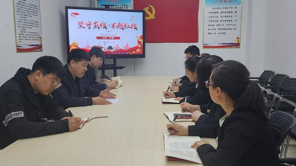 为深入贯彻习近平新时代中国特色社会主义思想,进一步引导党员干部增强纪法意识、纪律意识、规矩意识,做到公正用权、依法用权、为民用权、廉洁用权,强化警示教育,筑牢廉洁防线,铁道运输学院党总支于5月17日,在铁道运输学院党团活动室开展“坚守底线 不越红线”主题党课。党课由党总支书记张鑫主讲,学院科级以上干部参加本次学习。