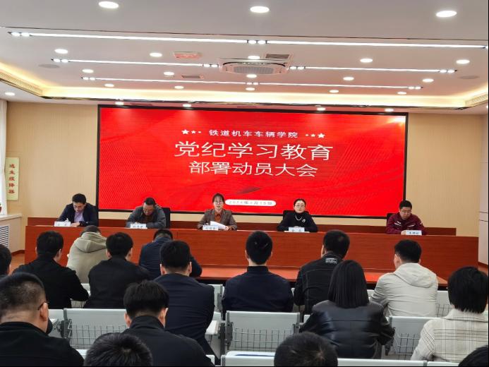 为认真贯彻落实学校党纪学习专题教育党委会会议精神,进一步强化学院全体党员的党纪意识、提升党纪素养、营造风清气正的政治生态,铁道机车车辆学院党总支于4月16日在第三会议室组织召开党纪学习教育部署动员大会。学院党员教师参加会议,会议由院长金晶主持。