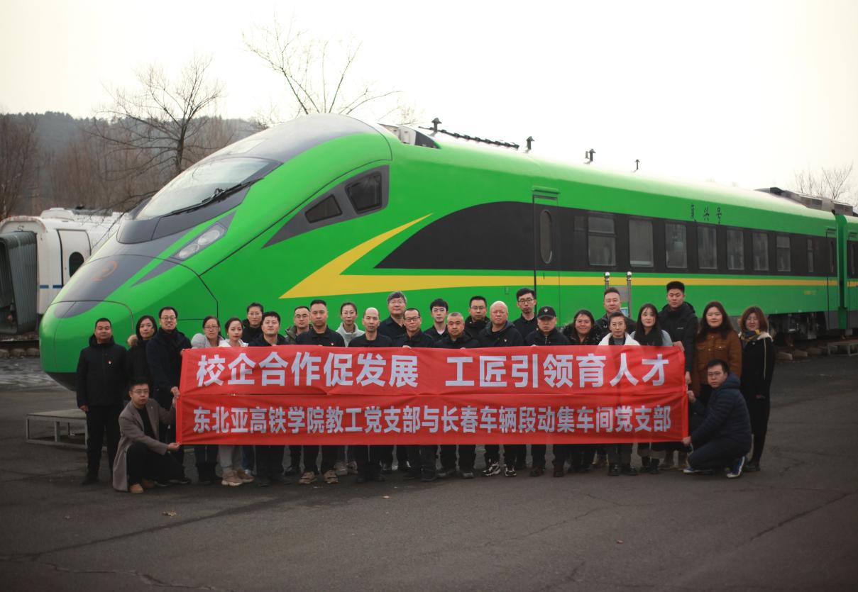 为深入学习贯彻党的二十大精神,进一步深化校企合作,推进校企党建工作融合共进,提升高铁技术服务型人才培养质量。2023年12月8日下午,东北亚高铁学院教工党支部与长春车辆段动集车间党支部联合开展了“校企合作促发展 工匠引领育人才”主题党日活动。东北亚高铁学院院长段金辉、党总支副书记曹煜、副院长尹凤伟、办公室主任王伟楠、长白山技能名师郑涛、李东君与长春车辆段动集车间副主任、党支部书记孙大勇及校企双方党员共同参加此次联合主题党日活动。