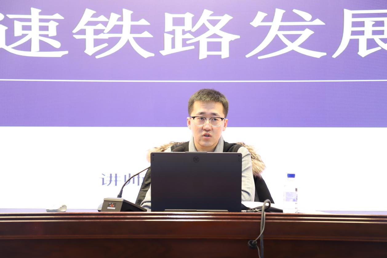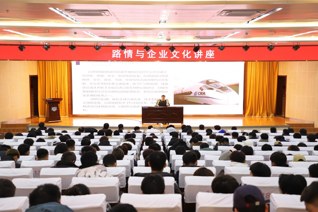 11月25日下午,铁道运输学院在图书馆报告厅成功举办《路情与企业文化》专题讲座。邀请铁道运输学院企业导师、中国铁路沈阳局集团有限公司本溪车务段高铁站站长高跃作为主讲嘉宾。本次讲座主旨是“传承高铁精神,争做新时代优秀铁路人”。讲座由铁道运营教研室主任李景华主持,铁道交通运营管理、铁路物流管理专业2022级全体学生参加。