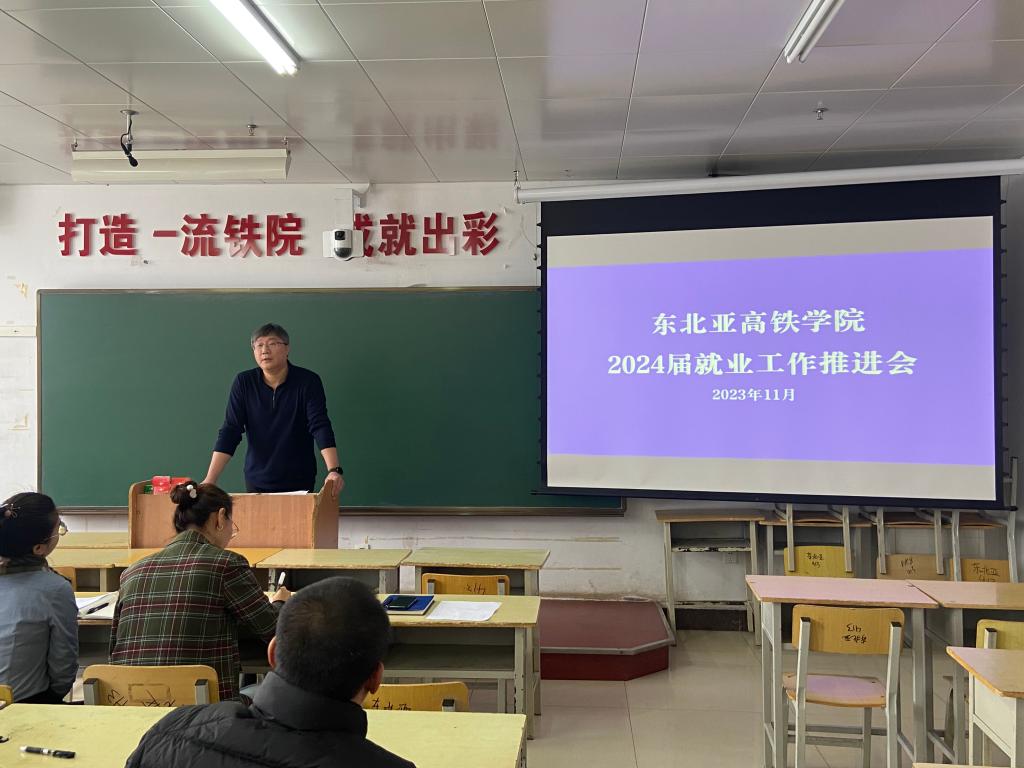 东北亚高铁学院于2023年11月23日召开2024届就业工作推进会,会议由段金辉主持,全体教职工参加。