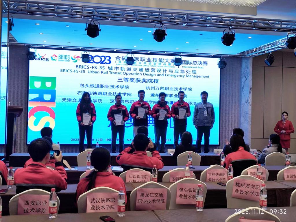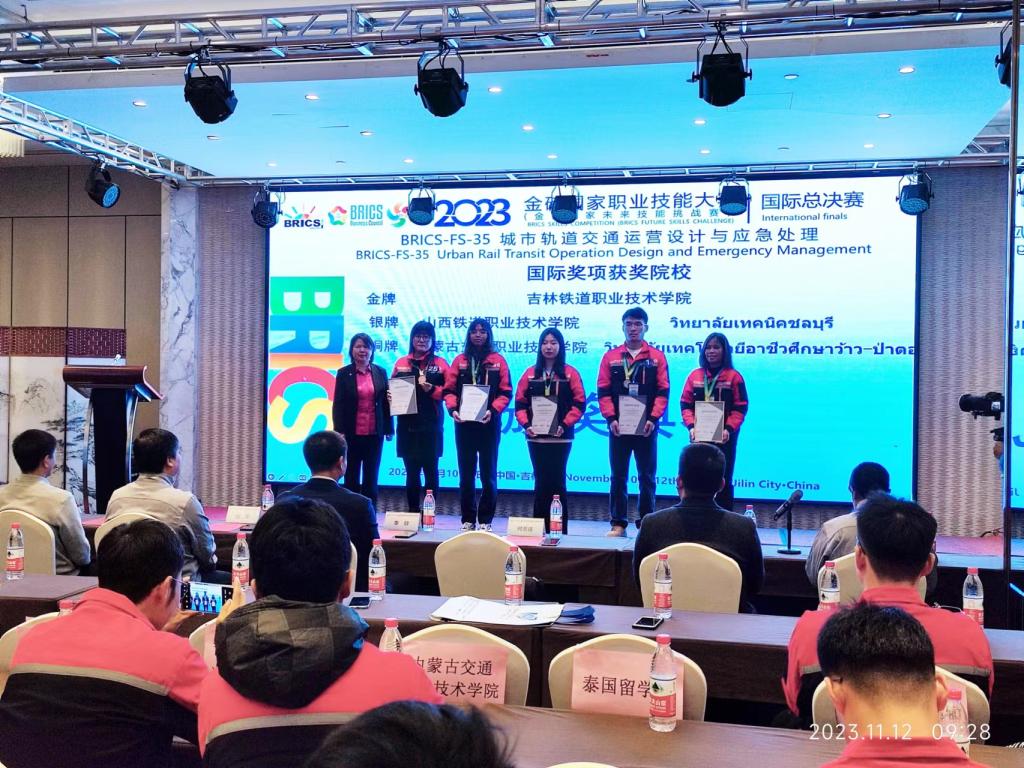 2023年11月11日,吉林铁道职业技术学院高铁综合技术学院铁道信号自动控制专业泰国留学生田心敏、方慧心,参加了2023年金砖国家职业技能大赛“城市轨道交通运营设计与应急处理”赛项国际总决赛(单人赛)。经过与来自全国25省45支代表队及30多支国际队激烈角逐,两名留学生分别获得了国际总决赛银奖和铜奖,同时,方慧心取得全国三等奖的好成绩。