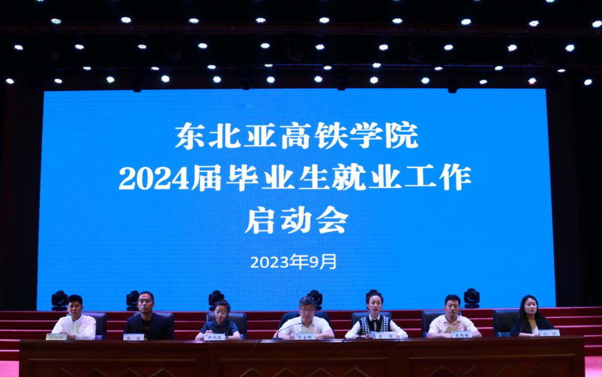 为深入贯彻习近平总书记在党的二十大报告中关于做好高校毕业生就业工作的重要指示,协同学校高质量完成2024届毕业生就业服务工作,帮助学生认清当前就业形势,提升就业意识,9月5日晚上,东北亚高铁学院在大学生活动中心召开了2024届毕业生就业工作启动会,东北亚高铁学院院长段金辉,副院长尹凤伟,教学办公室主任王伟楠,学生办公室主任兼团委书记郭迪,辅导员高雅、冯建宇以及2021级全体学生参加了会议,会议由党总支副书记曹煜主持。