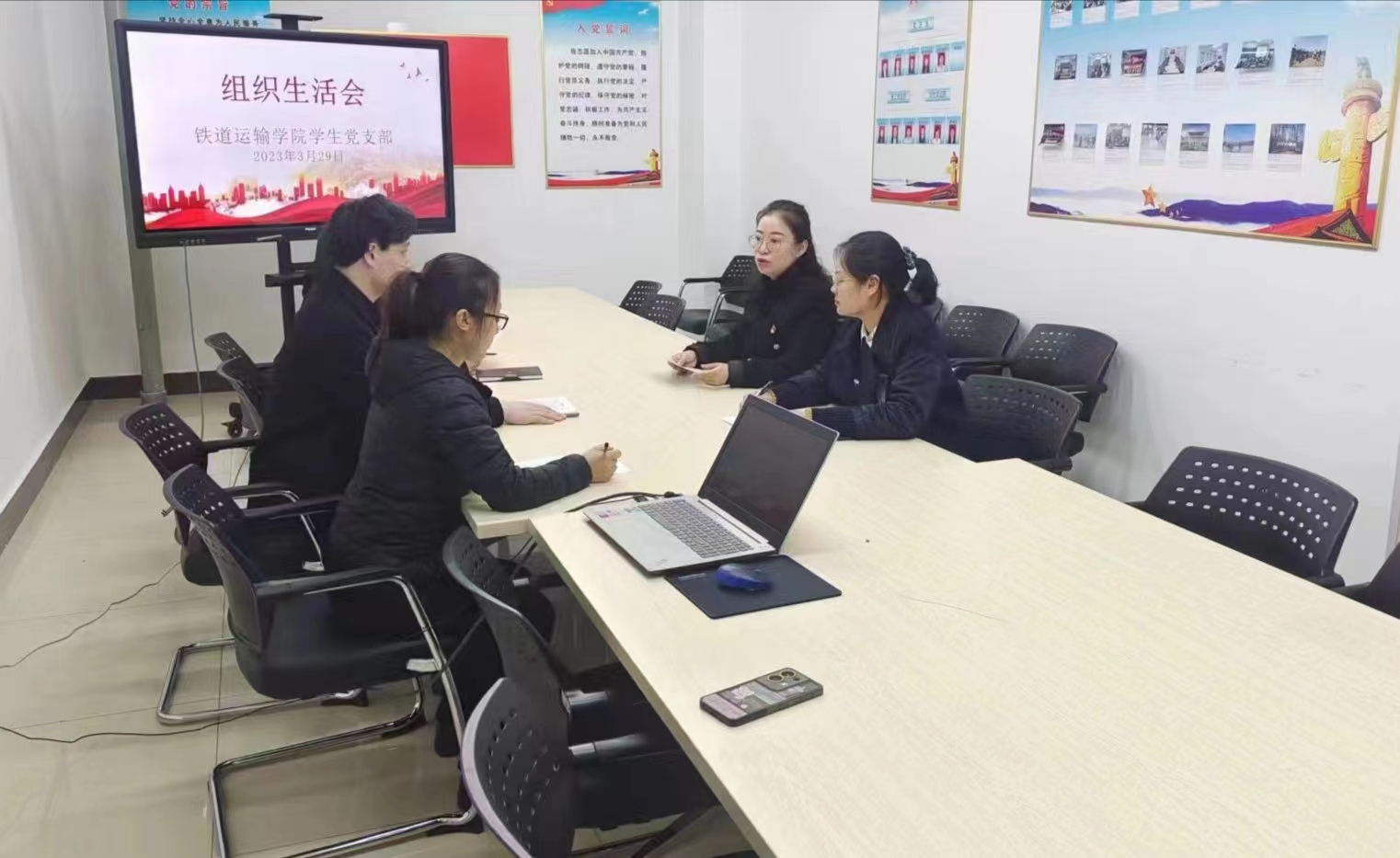 3月29日上午,按照学校党委《关于召开2022年度基层党组织组织生活会和开展民主评议党员的通知》要求,铁道运输学院学生党支部在教学楼403召开专题组织生活会。会议由学生党支部书记徐薇主持,支部党员参会,铁道运输学院院长吴荣波到会督导。