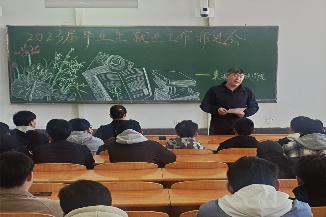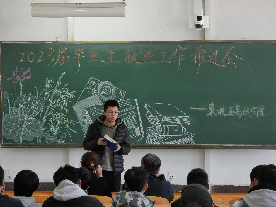 为深入学习宣传贯彻党的二十大精神,认真落实“稳就业”“保就业”决策部署要求,协同学校高质量完成2023届毕业生就业服务工作,东北亚高铁学院于3月18日在教学楼西阶梯402、东阶梯402教室组织召开两场2023届毕业生就业工作推进会。东北亚高铁学院党总支书记段金辉,党总支副书记曹煜,辅导员李永琢、孙奇以及全体未就业学生参加了会议,会议由学办主任郭迪主持。