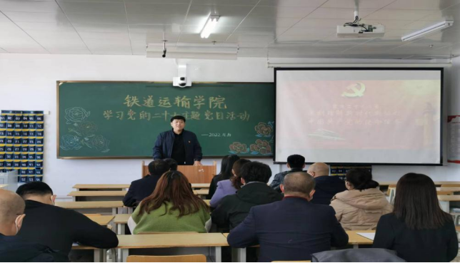 11月14日,为推动党的二十大精神入脑入心、指导实践,引领学院党员教师自觉践行初心使命、职责担当,铁道运输学院党总支开展“学习党的二十大精神”系列主题党日活动,全体党员参与活动。