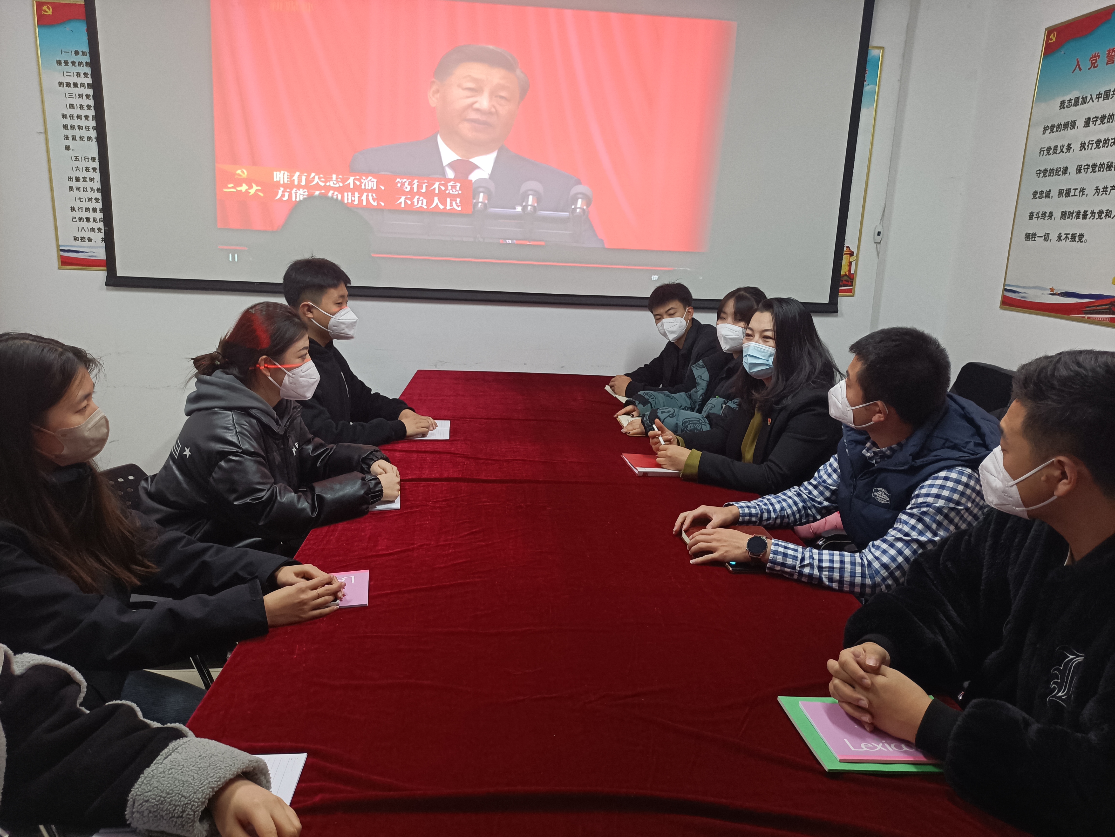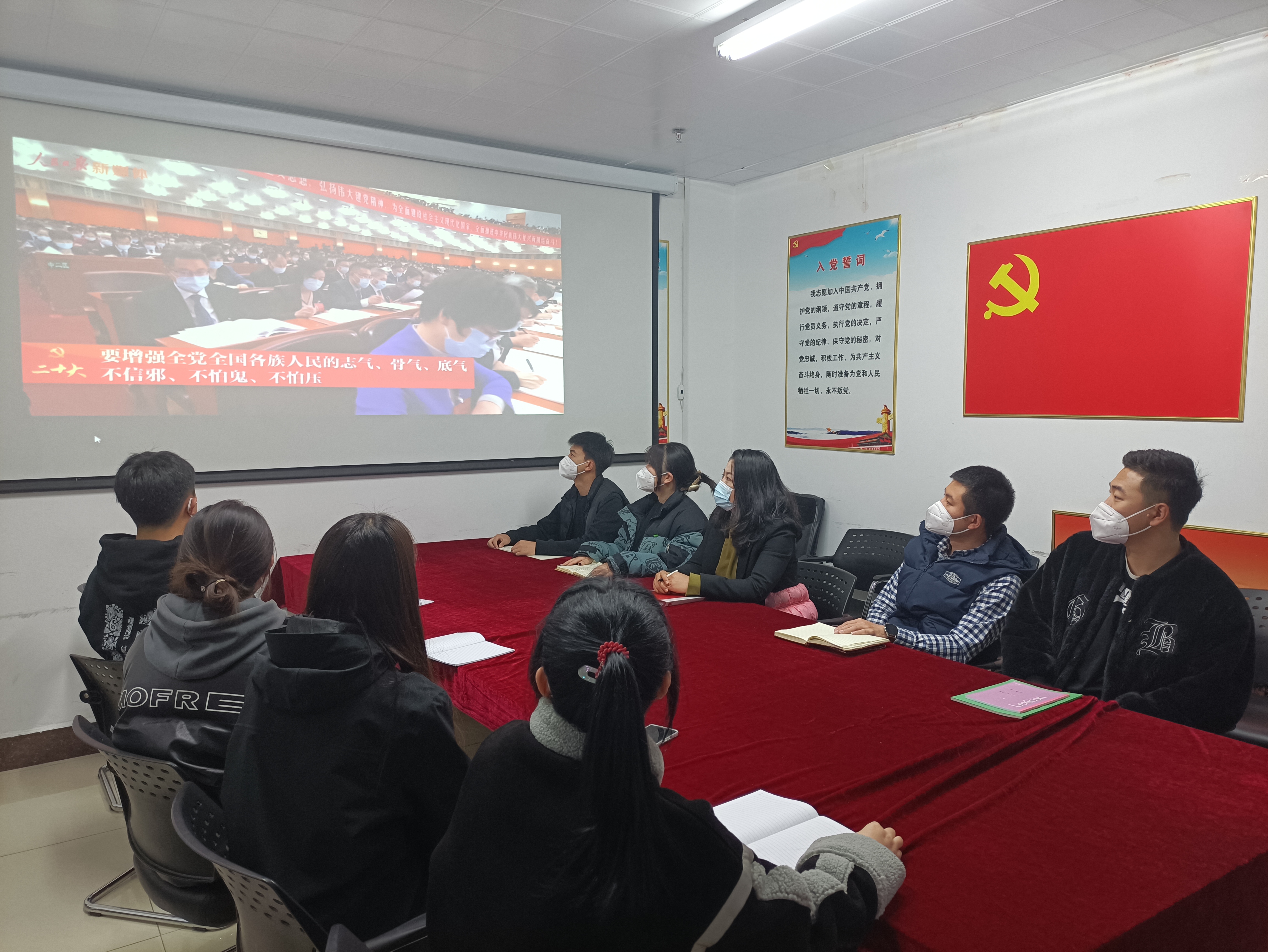 再次,于沛弘老师带领大家集体观看了党的二十大开幕式上习总书记的讲话视频。全体党员现场逐一分享学习体会,积极分子会前书面提交心得。大家纷纷表示,通过学习深受洗礼,理论境界再升华,未来工作和学习中,将不断加强自身思想淬炼、政治历练、实践锻炼、专业训练,练就“六铁一全”吉铁院特质学生敢于善于斗争的硬脊梁、铁肩膀、真本事。